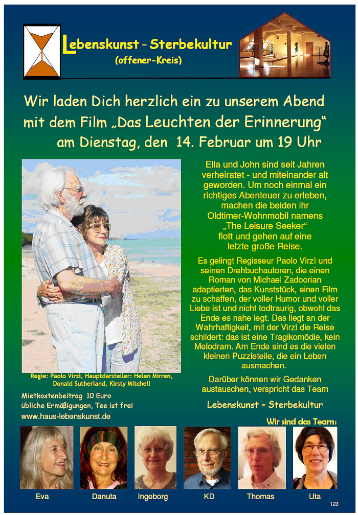 Wir laden einmal im Monat dienstags im Haus Lebenskunst ein zu einem Gedankenaustausch.